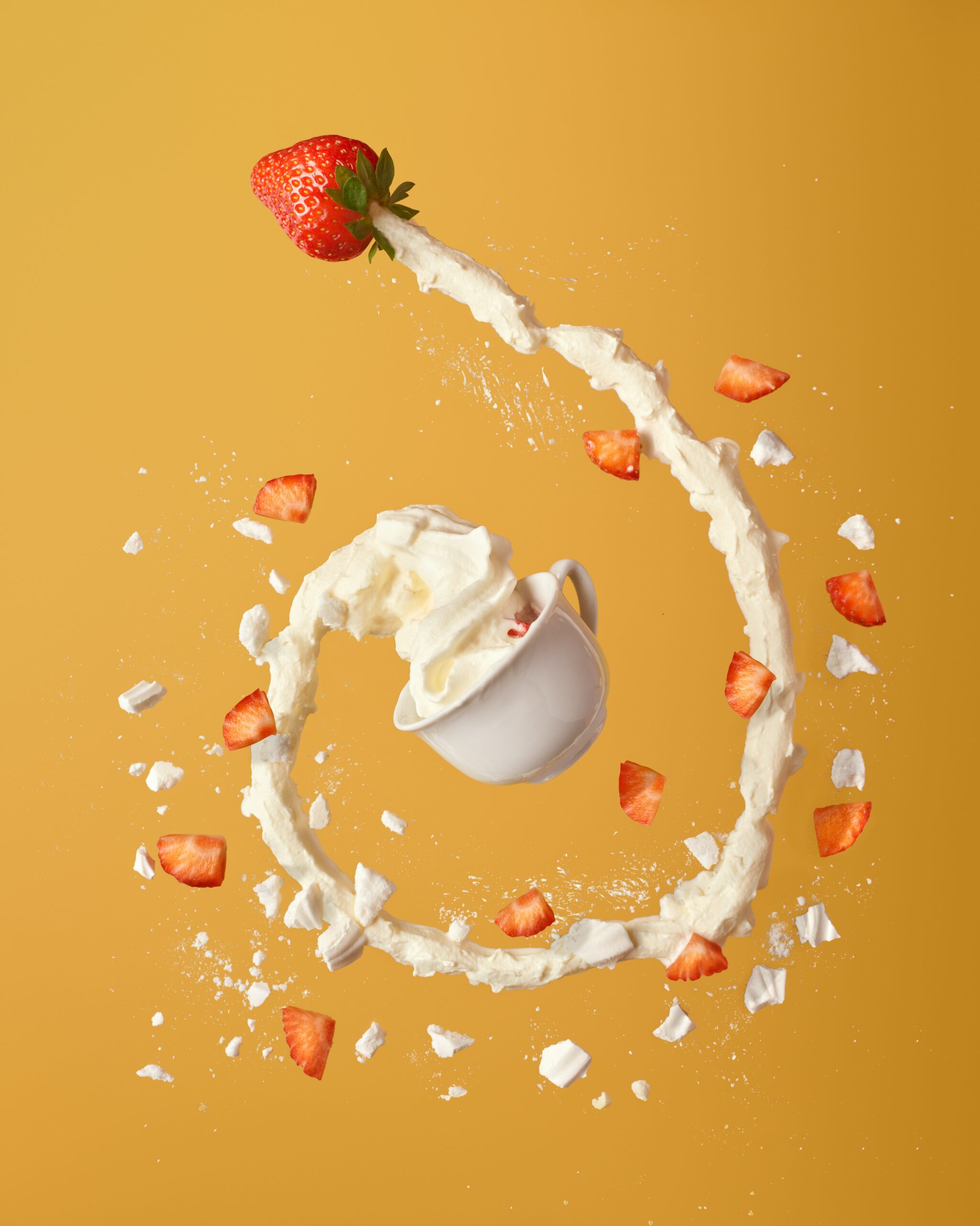 После того, как густые сливки готовы, их можно превратить во взбитые сливки путем взбивания. Хотя одним из способов производства взбитых сливок является аэрация в непрерывном роторно-статорном взбивающем устройстве с использованием нейтрального газа, например азота, более традиционным методом является механическое взбивание в крупных промышленных взбивальных машинах или высокоскоростных миксерах. В процессе механического взбивания образуются пузырьки воздуха, а белки одновременно адсорбируются на их поверхности.На его поверхности скапливаются жировые шарики, образуя сеть агрегатов жировых шариков. Для того чтобы взбитые сливки сохранили свою форму и структуру, они должны пройти процесс стабилизации посредством адсорбции соответствующего поверхностно-активного вещества, такого как белки и полярные липиды. Если этот шаг выполнен неправильно, структура взбитых сливок постепенно уменьшится.